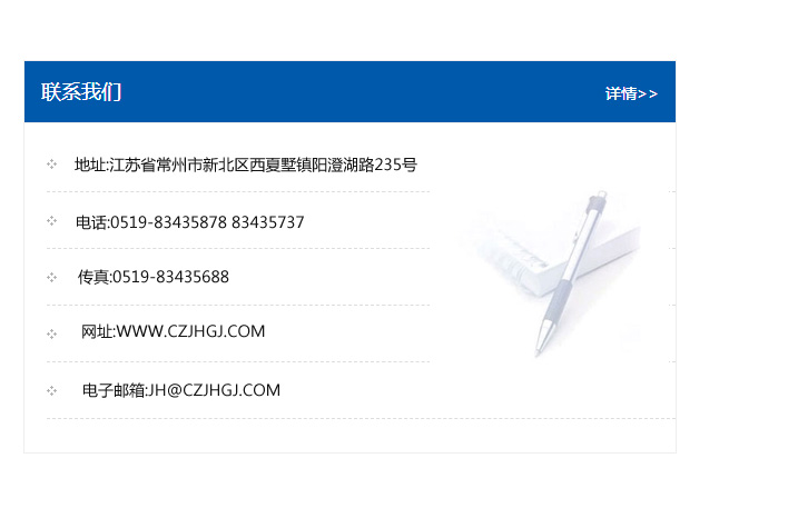 傳真:0519-83435688    郵編:213135    網址:WWW.czjhgj_com.cgpaimai.com    電子郵箱:JH@czjhgj_com.cgpaimai.com